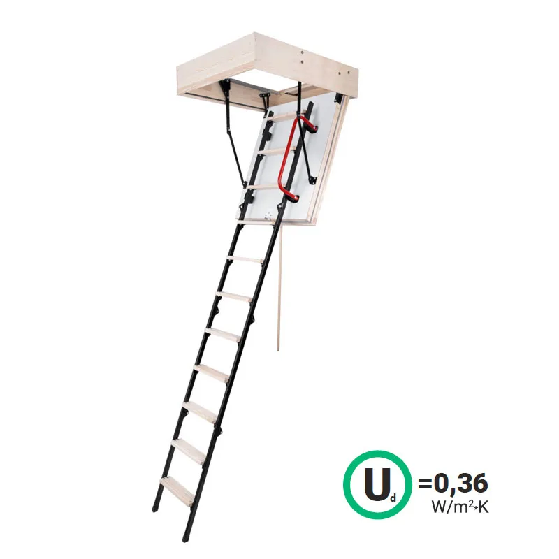Превосходно подходит для домов, в которых наблюдается значительная разница температур между неотапливаемым холодным чердаком и отапливаемым жилым помещением. В данной модели применена новая конструкция, повышающая прочность и надежность движущихся элементов. Нагрузка при эксплуатации перенесена на лестничный марш, благодаря чему крышка полностью заполнена утеплителем. Лестница LWT комплектуется удобным поручнем и пластиковыми наконечниками на ножки. Монтажный комплект LXK приобретается отдельно.
