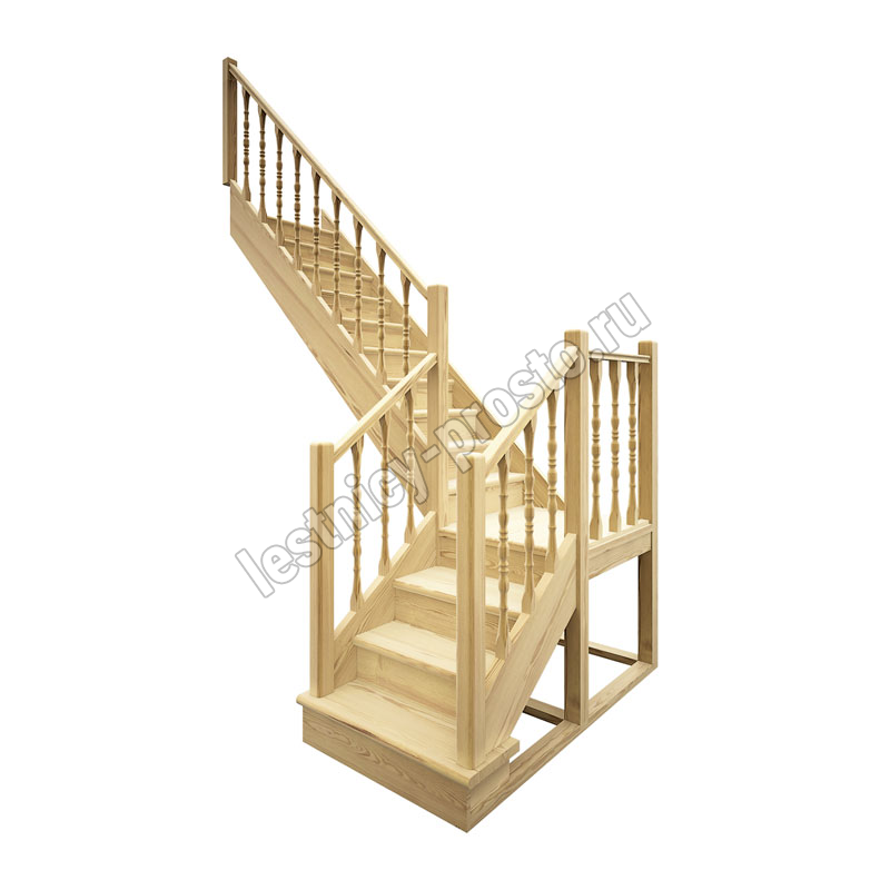 Деревянная межэтажная лестница ЛЕС-04, Лиственница