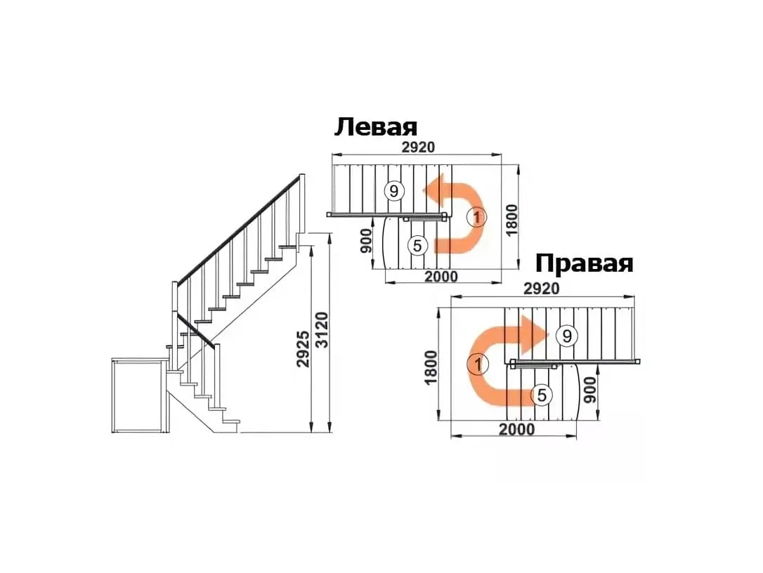 Ступени и поручень лестницы изготовлены из бука, остальные элементы из сосны.