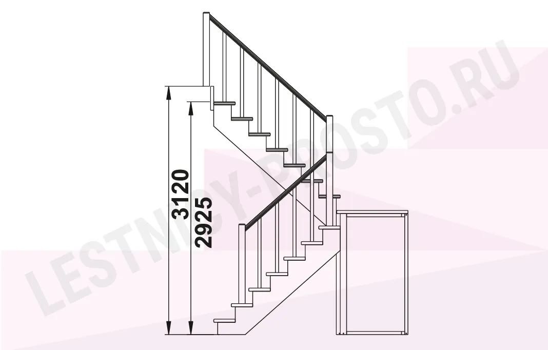 Ступени и поручень лестницы выполнены из дуба, остальные элементы из сосны. Возможно изготовление данной модели полностью из дуба.