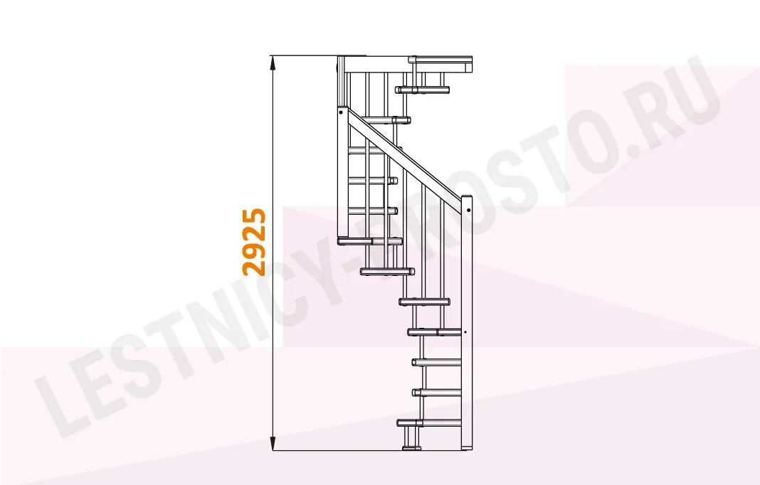 Схема лестницы ЛВ-1.0М с поворотом налево
