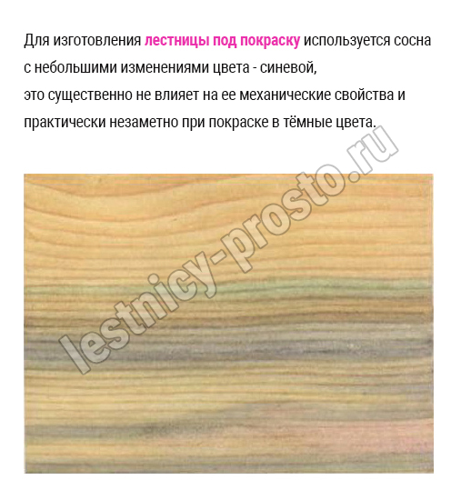 В производстве лестницы ЛС-91м базовая под покраску используется сосна с небольшими изменениями цвета, что практически не влияет на ее механические свойства и почти незаметно при покраске в темные цвета, но позволяет без ущерба для эксплуатационных свойств лестницы получить более доступный по цене вариант лестницы.