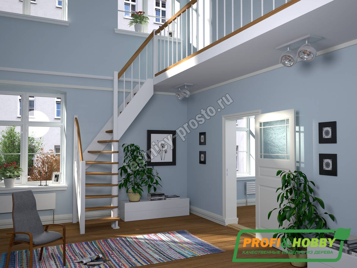 Лестница из сосны под покраску ЛС-91М+2 ступени сверху
