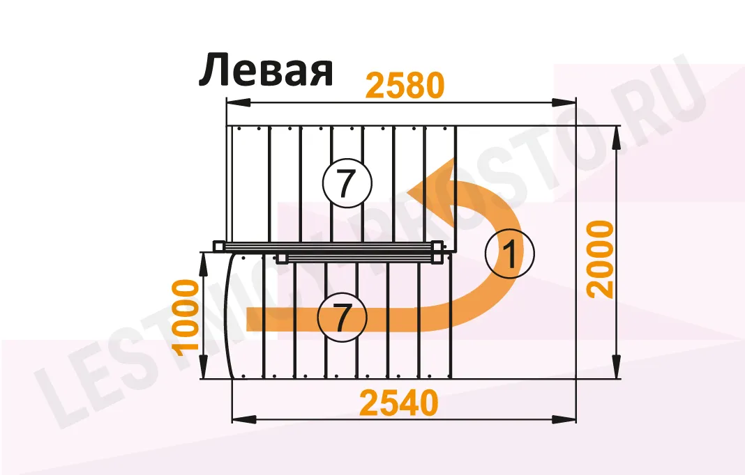 Базовый комплект включает в себя элементы лестницы с подступёнками и ограждения без какого-либо покрытия.