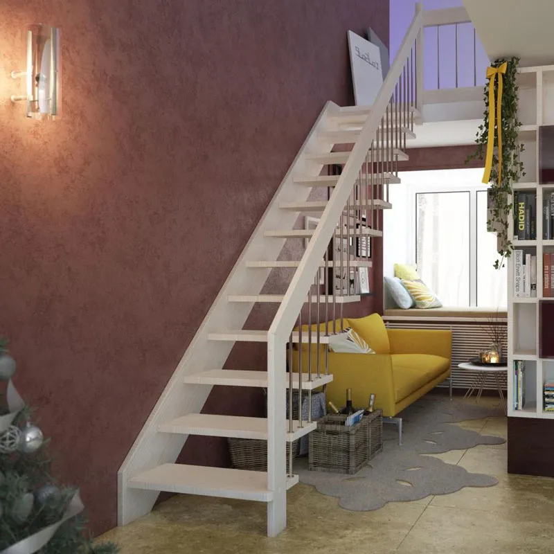 Надёжная современная лестница выполнена по немецкой технологии. Стоимость указана для лестницы с ограждением (с одной стороны); Поставляется в разобранном виде, в комплекте необходимый крепёж; Лестницу можно собрать самостоятельно; Так же, вы можете заказать услугу монтажа нашими специалистами; 4 вида породы дерева для изготовления лестницы: сосна, бук, ясень, дуб; возможна комбинированная лестница: из сосны (ступени бук, ясень, дуб); Деревянные элементы без какого-либо покрытия, отшлифованы, готовы к покраске. За дополнительную плату, вы можете изменить любые параметры, а именно: увеличить глубину ступени; увеличить ширину марша до 900 мм. и выше; заказать подступенки к лестнице; заказать отделку перекрытия (между 1-м и 2-м этажами); изготовить дополнительный промежуточный марш; заказать ограждение 2-го этажа; покраска в любой цвет или несколько цветов или покрытие защитными средствами; дополнение балясины из нержавеющей стали деревянными элементами; покраска балясин из нержавеющей стали порошковой краской в цвет RAL.