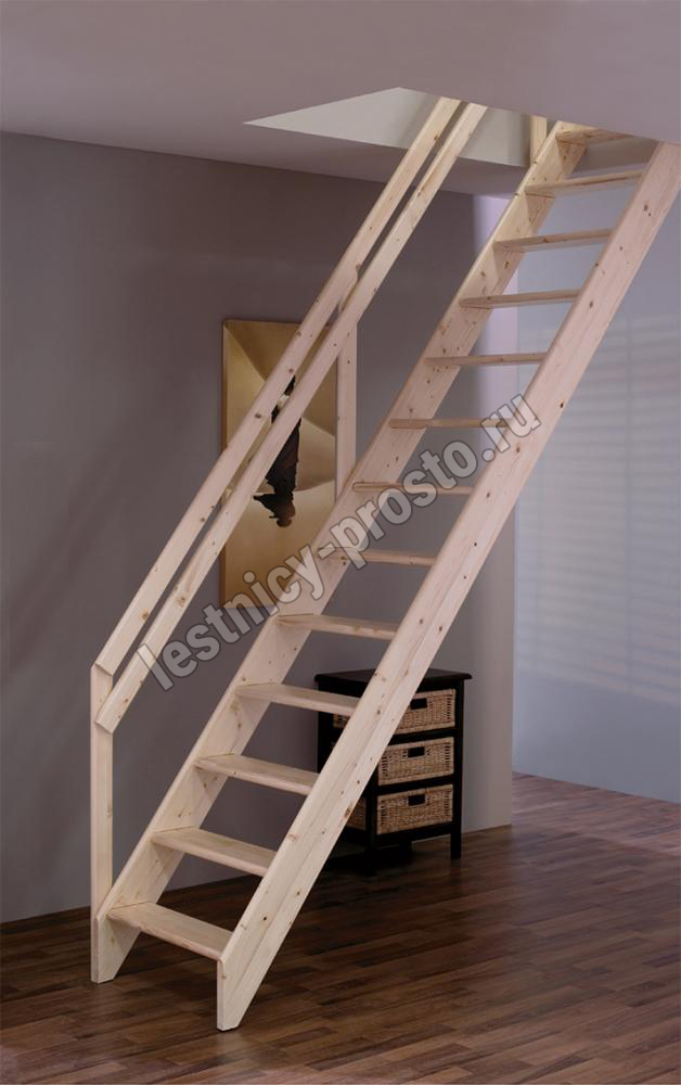 Мансардная лестница из ели М-012У с поручнем