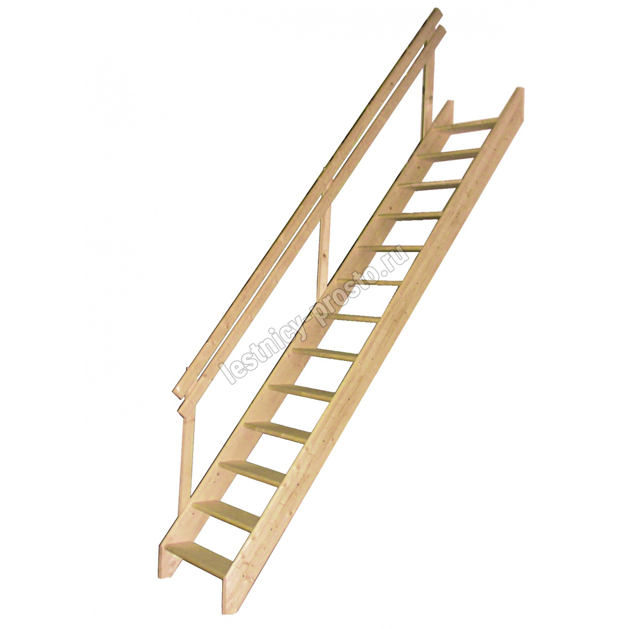 Базовая комплектация включает в себя деревянные элементы лестницы и поручень без какого-либо покрытия.