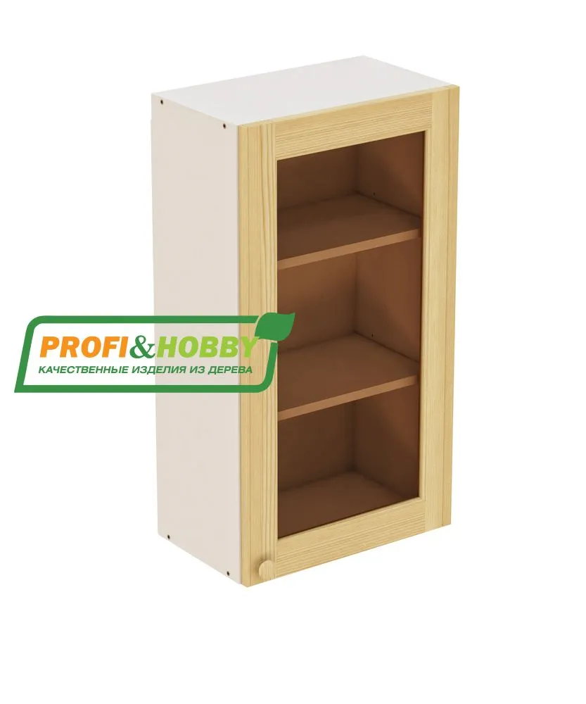 Шкаф навесной 300х340х960 + фасад сосна под стекло бесцветный акриловый лак