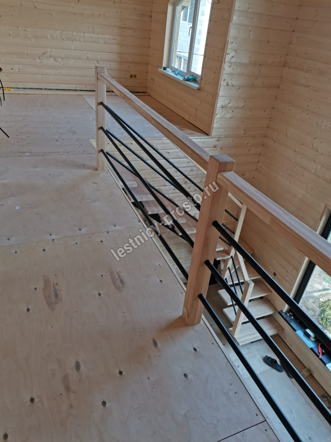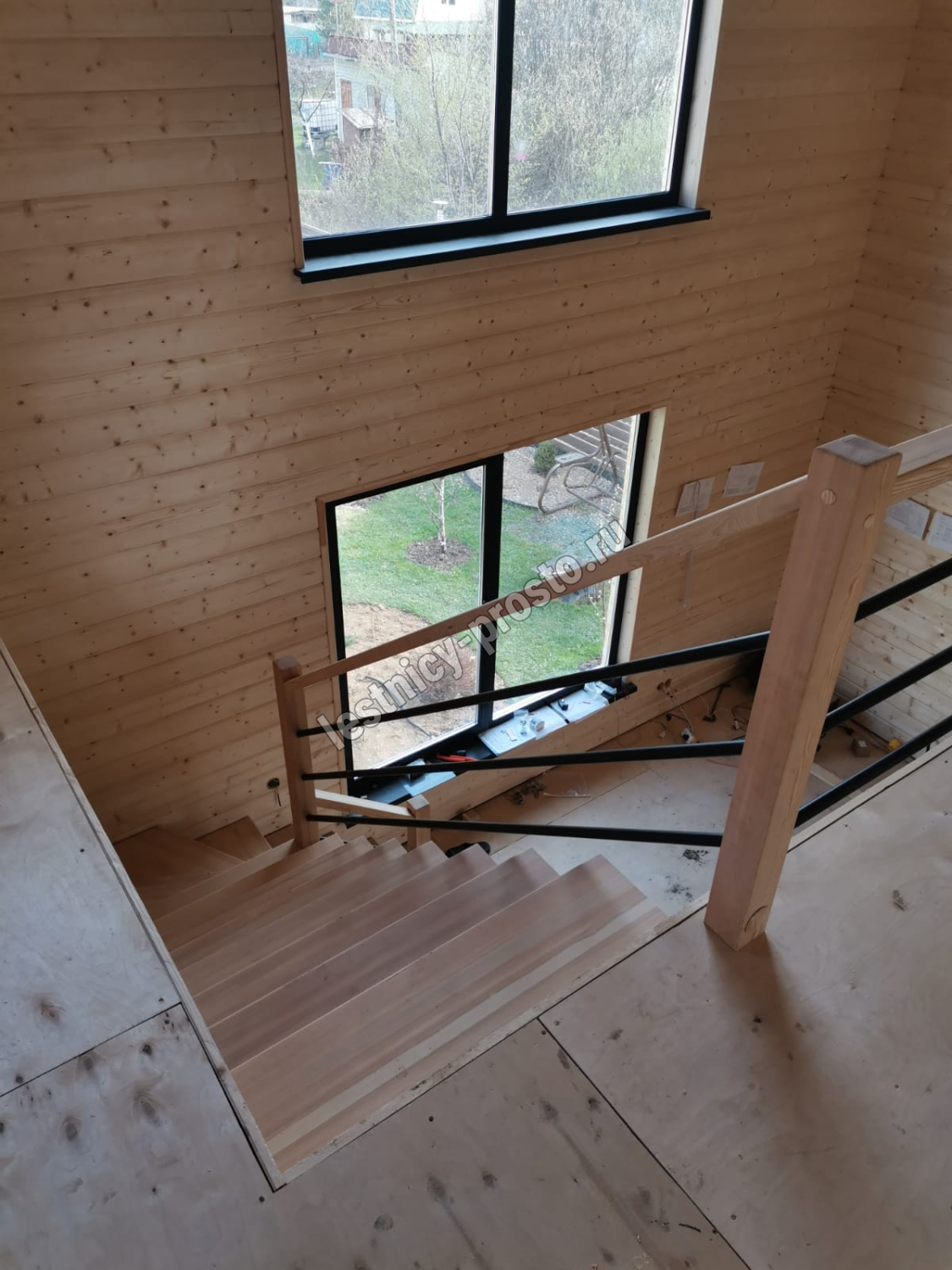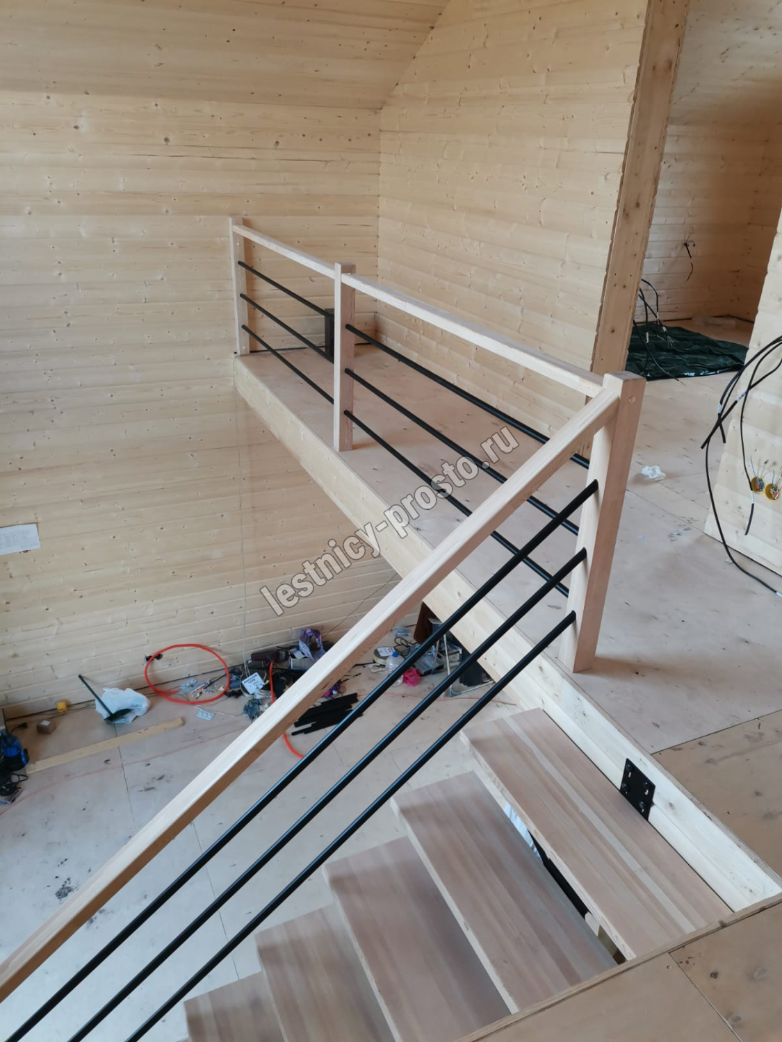 Лестница PROSTO MONO STEP TRINITY г-образная забежная, ступени бук, с ограждением