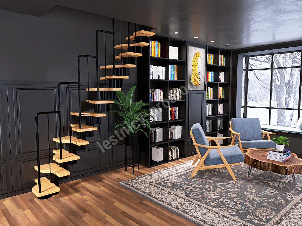 Лестница Prosto Urban Black гусиный шаг 700 мм, h216-312 см (12 ступеней), берёза мультиплекс