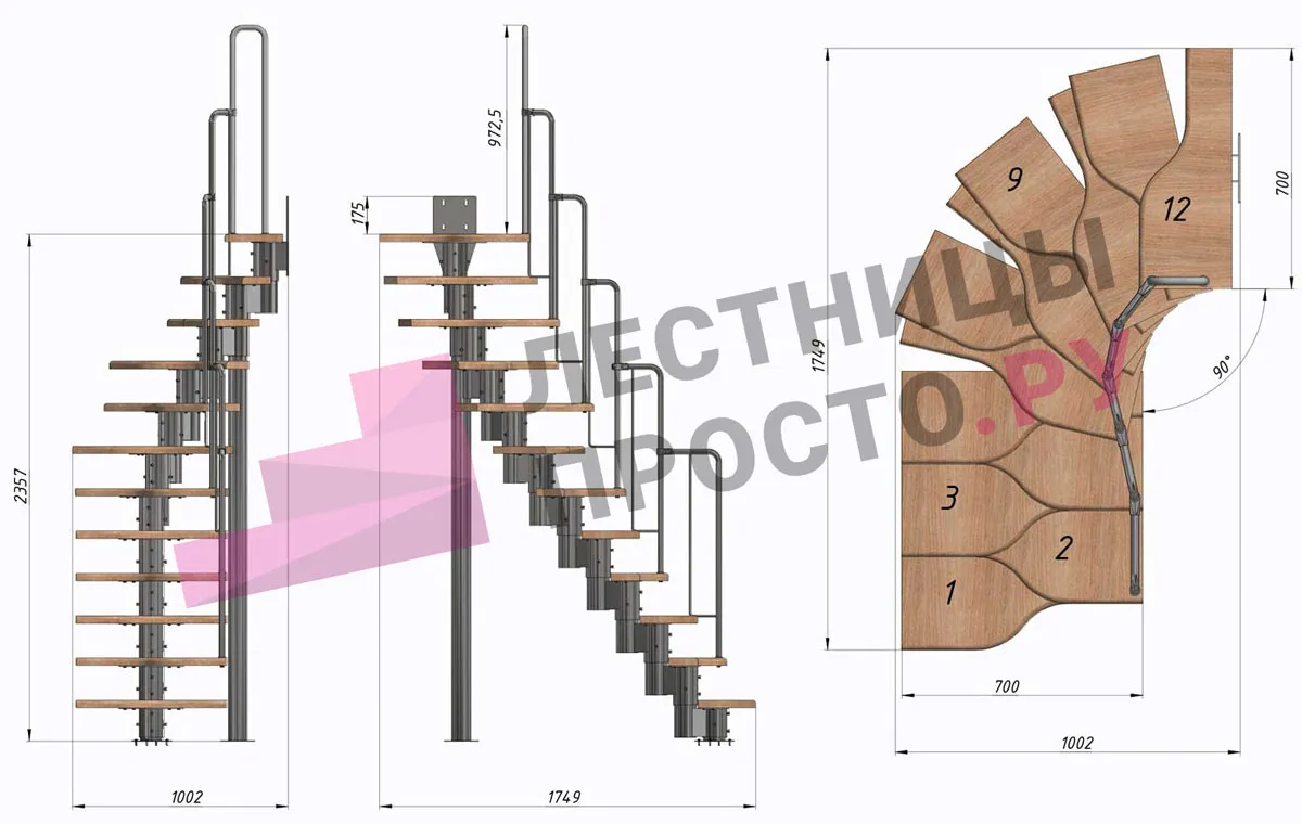 | Лестница Prosto Urban Black гусиный шаг 700 мм, h216-312 см (12 ступеней), бук |