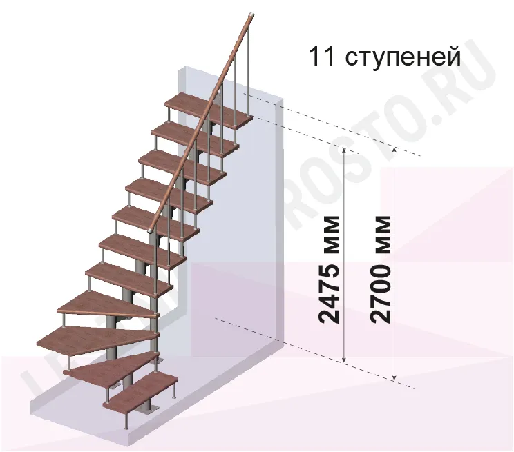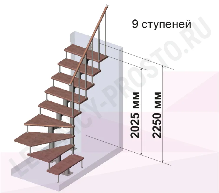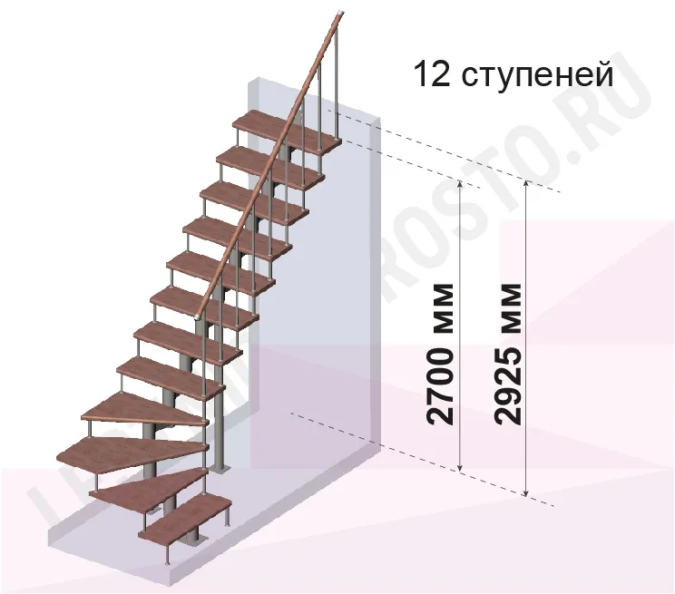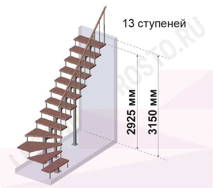 Количество ступеней до поворота - может быть любым , по запросу мы рассчитаем стоимость и сделаем чертеж-схему в соответствии с вашими параметрами.