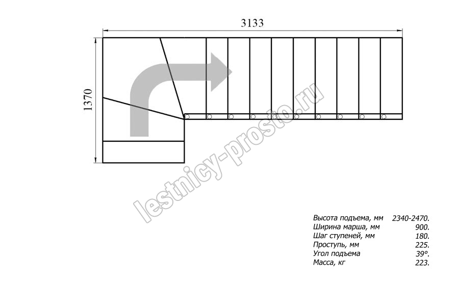 Модульная лестница Фаворит 180 2340-2470, Белый, Сосна, Крашеная, Без Ступений