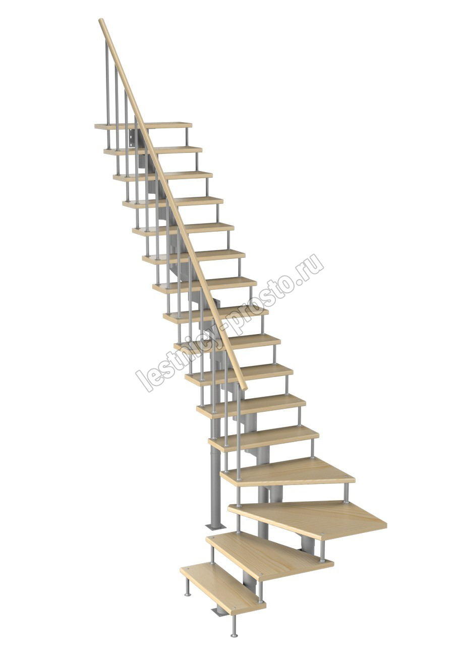 Модульная лестница Фаворит 180 2880-3040, Серый, Бук, Нержавеющая сталь