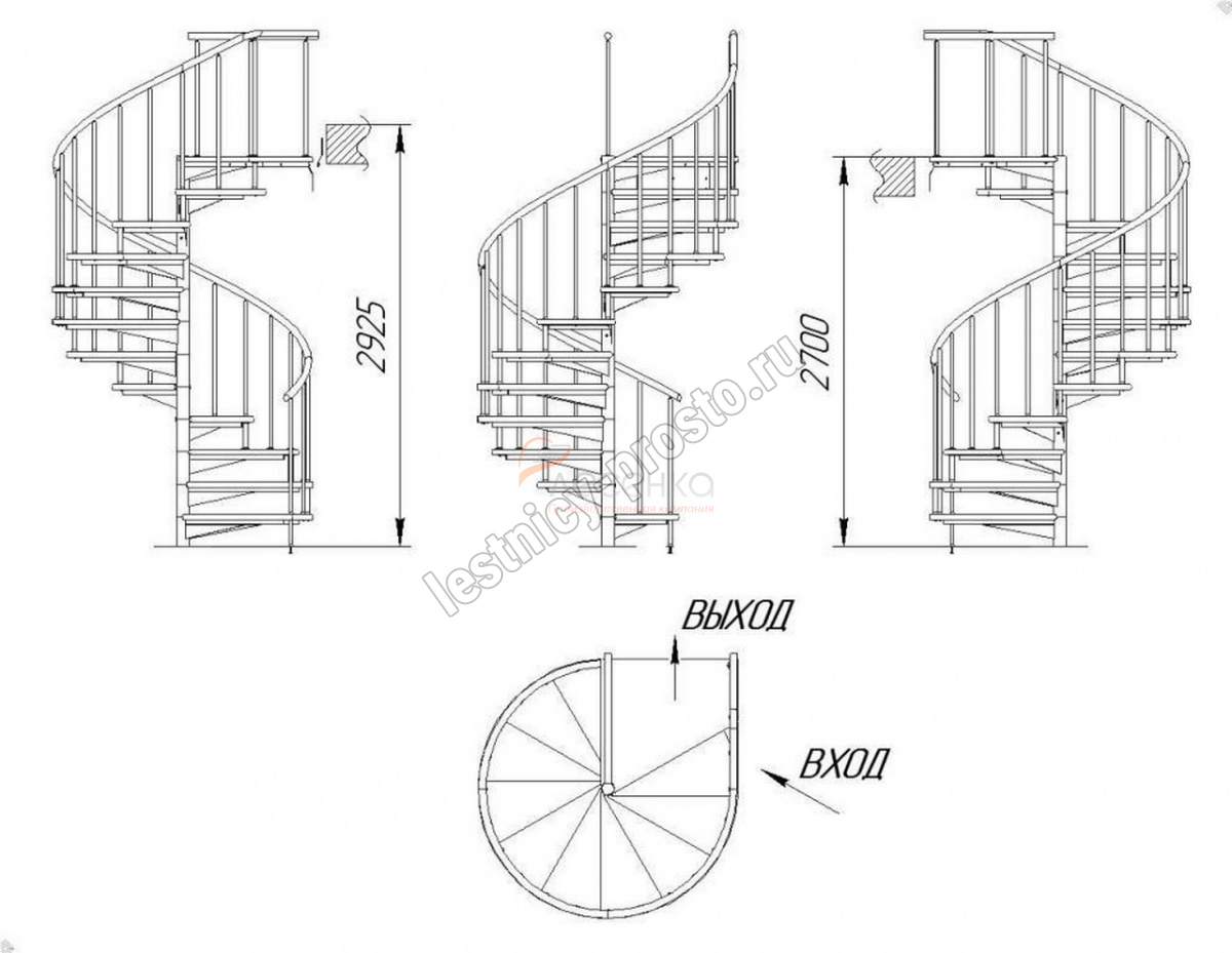 Винтовая лестница ЛЕС-1,8 высота 2700-2925, Черный, Сосна