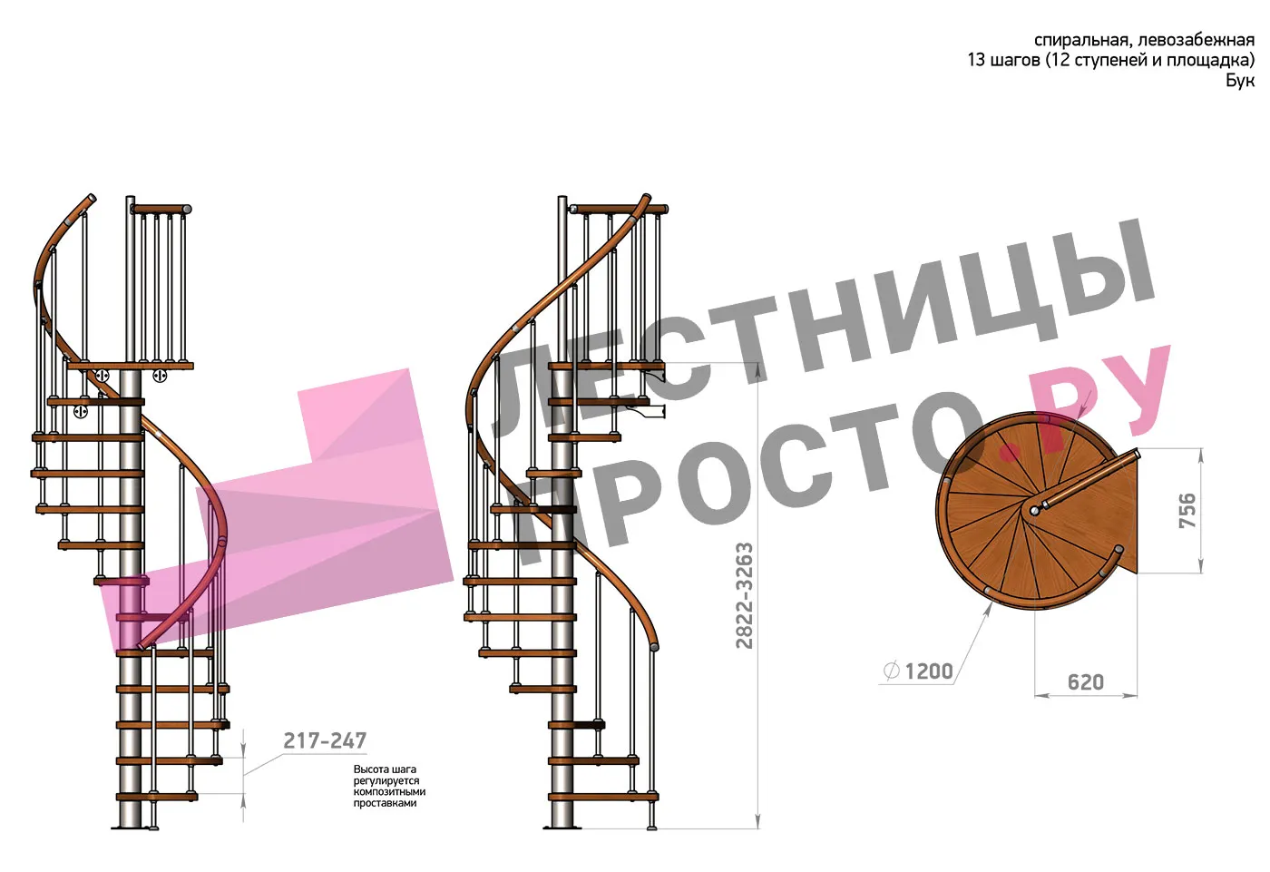 Правая, d=120см, 13 ступеней + площадка