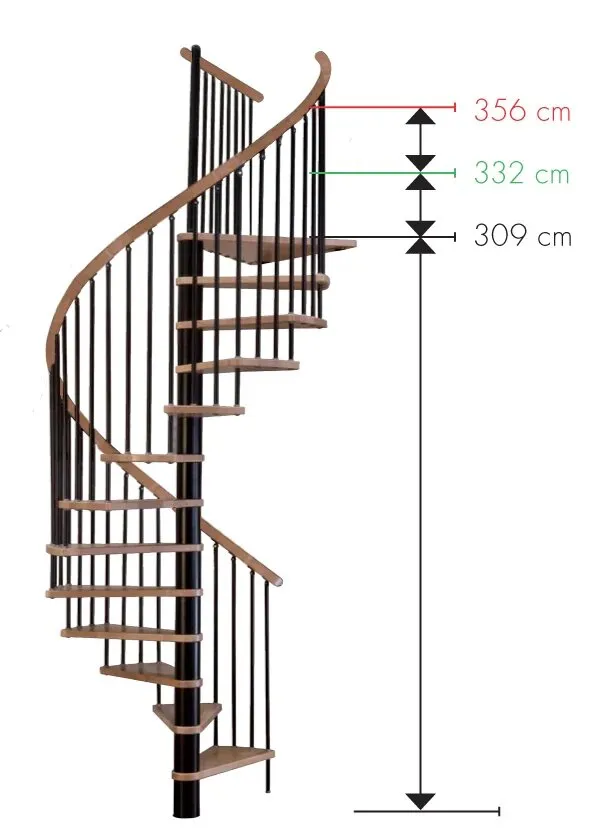 Лестница представлена в двух вариантах: с поворотом направо и с поворотом налево. Благодаря возможности регулировать высоту шага с помощью пластиковых вставок (входят в базовый комплект), высоту лестницы можно варьировать в пределах от 2860 до 3090 мм. Кроме того, купив дополнительную секцию для этой лестницы, можно поднять высоту до 3320 мм.