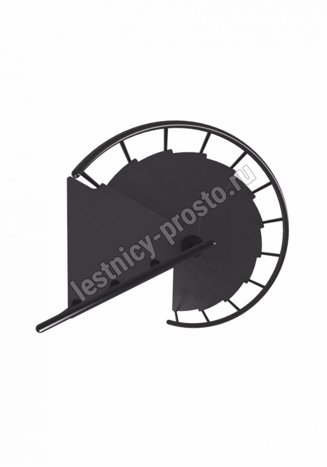 Ступени лестницы изготовлены из бука по технологии MULTIPLEX и покрыты износостойким защитным лаком. Лестница монтируется как по часовой стрелке, так и против. Возможен монтаж в круглый или квадратный проём. Ограждение: стальные трубки, Ø25 мм RAL 7016. Поручень: гибкий цельный ПВХ-поручень Ø40 мм антрацитового цвета. Конструкция и балюстрада окрашены порошковым способом в антрацитовый цвет (RAL 7016).