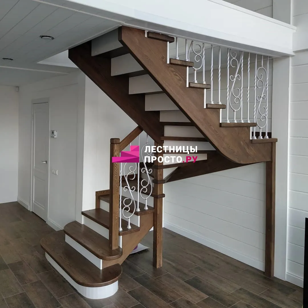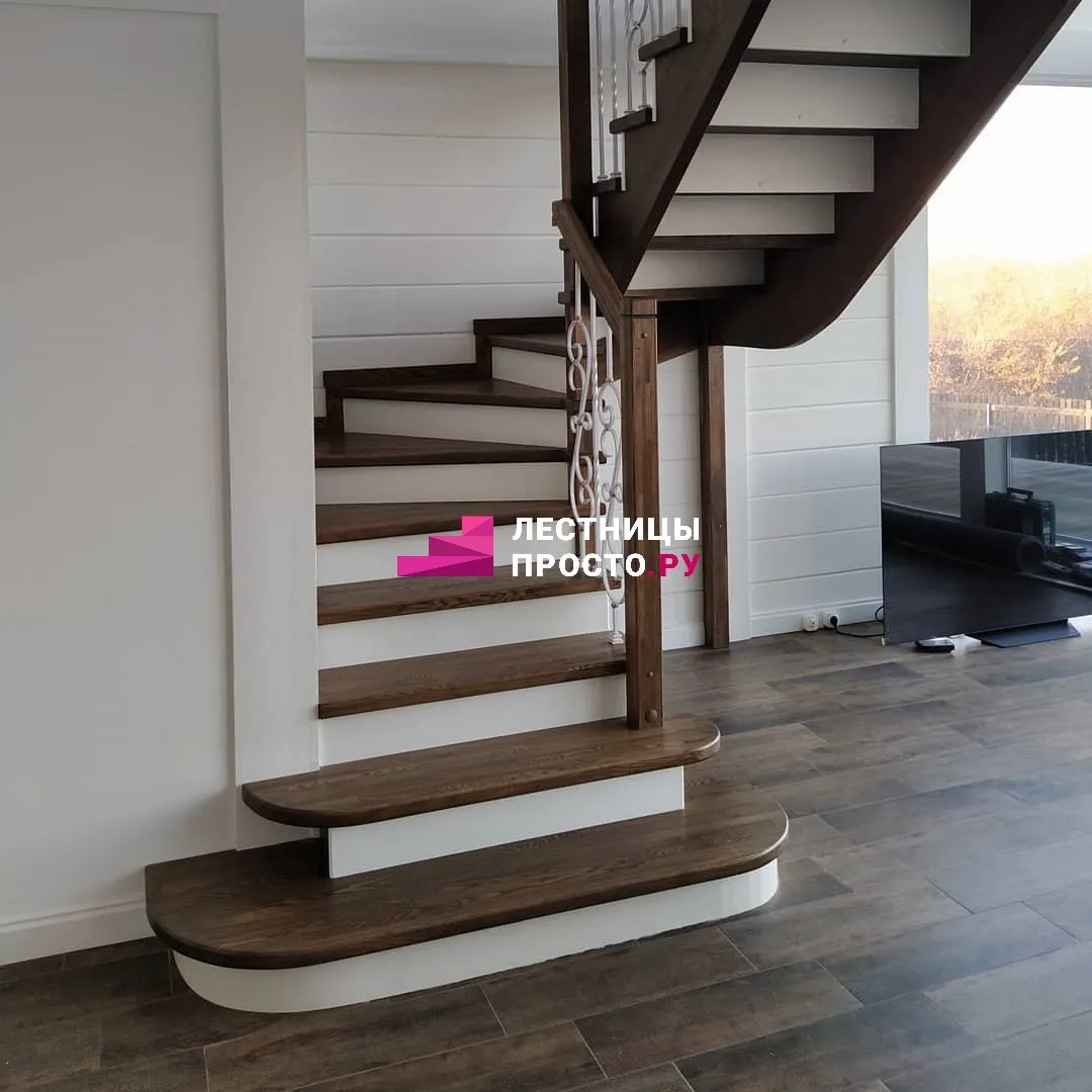 Лестница из ясеня с кованым ограждением по индивидуальному проекту LP-055