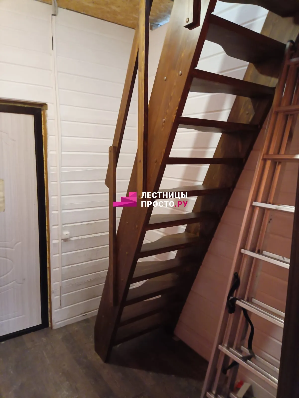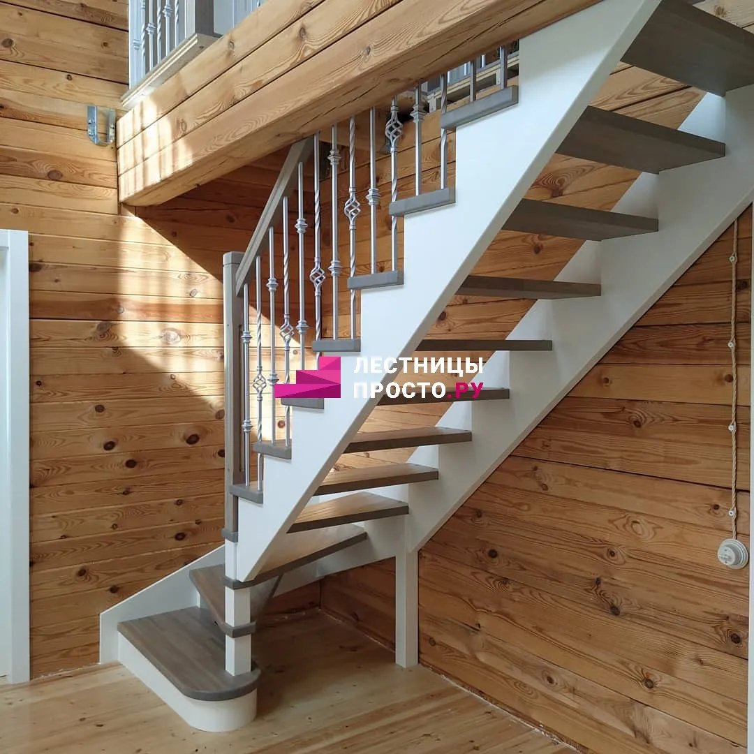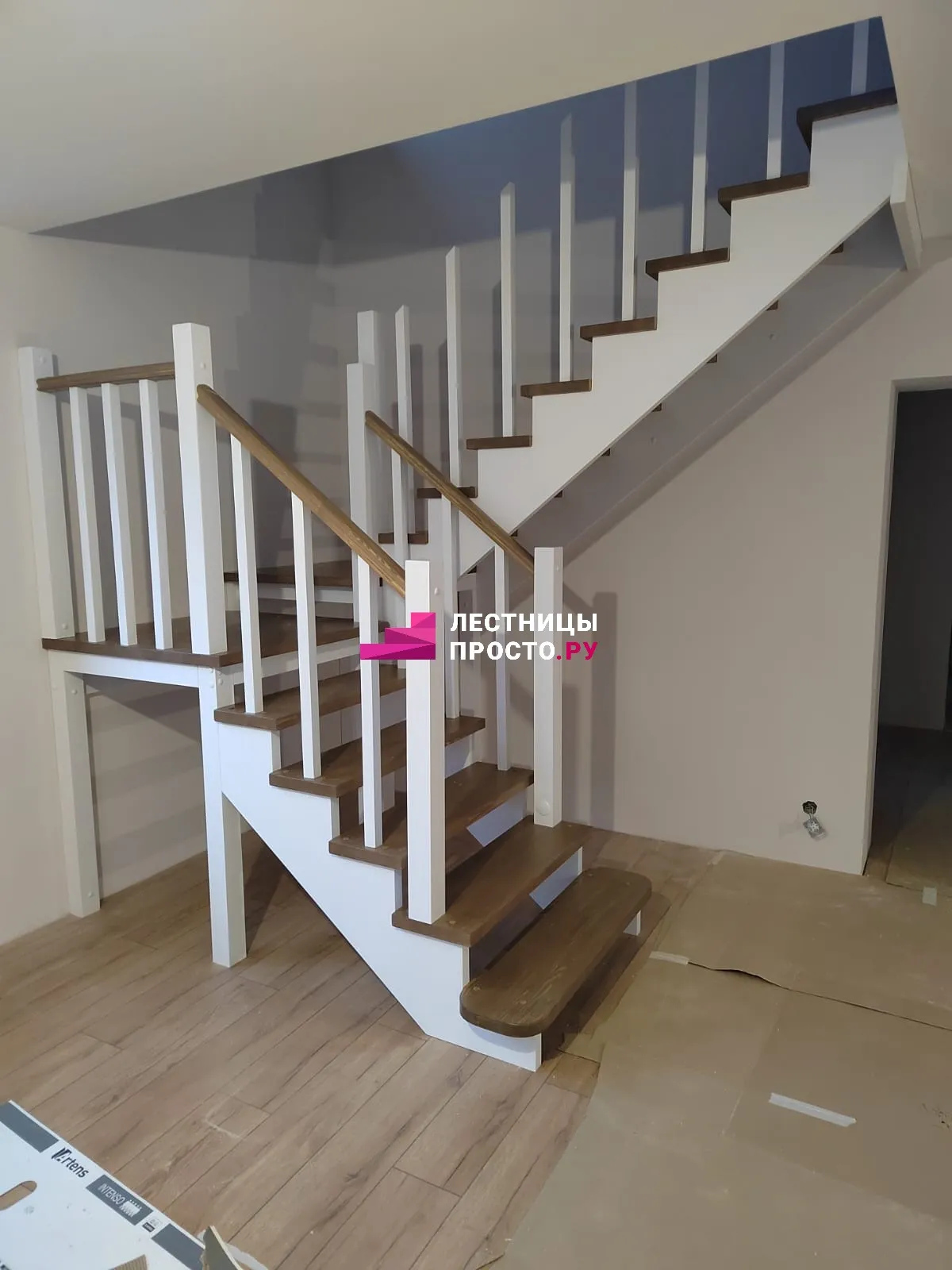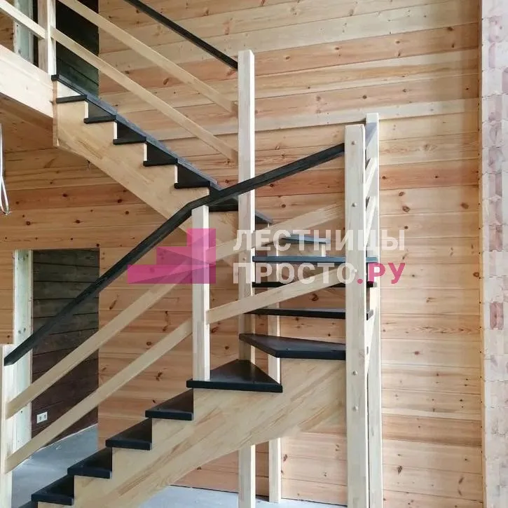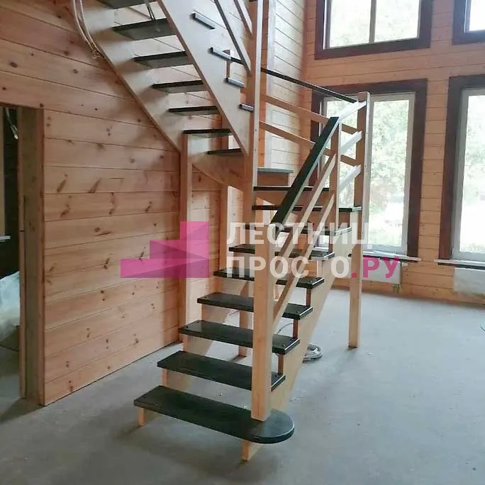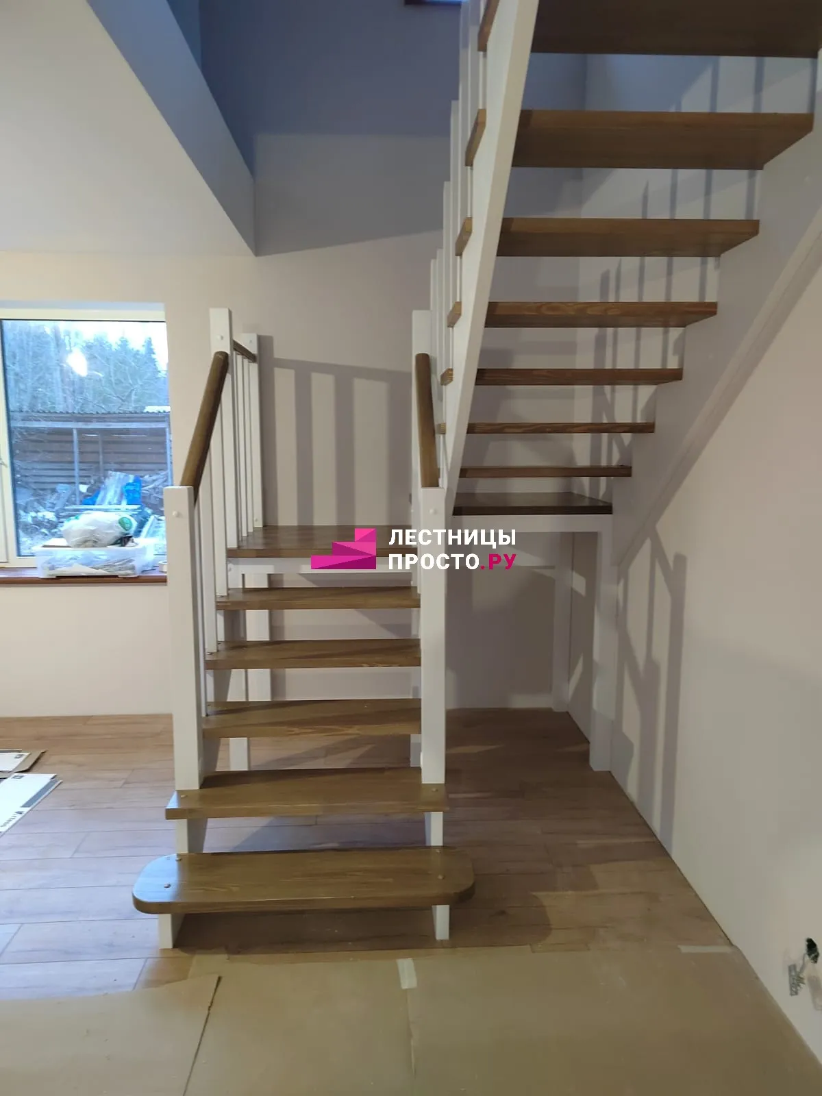 Г-образная лестница из сосны для частного дома ЛС-07/4
