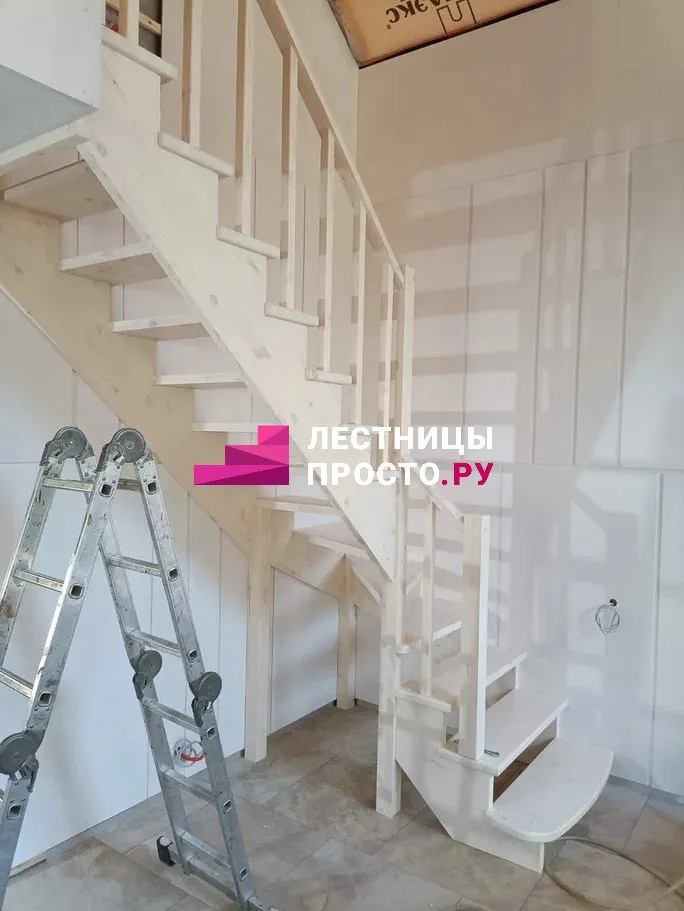 П-образная лестница из сосны с покраской по образцу КРРС-000134