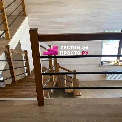 Отделка двухмаршевой бетонной лестницы деревом LP-1-44