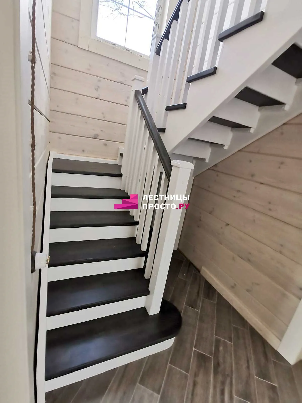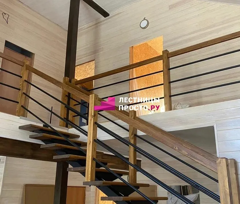 Лестница LP из сосны на второй этаж с поворотом на 180 градусов