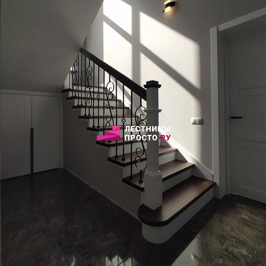 Ограждение Кованые стойки, перила - лиственница